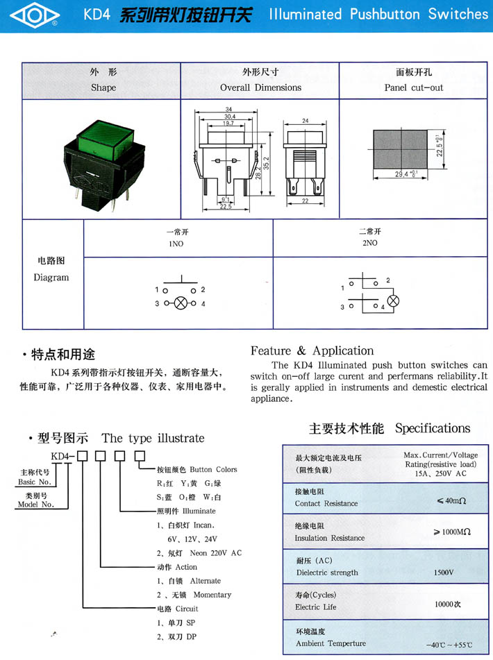 產(chǎn)品型號:KD4系列帶燈按鈕開關